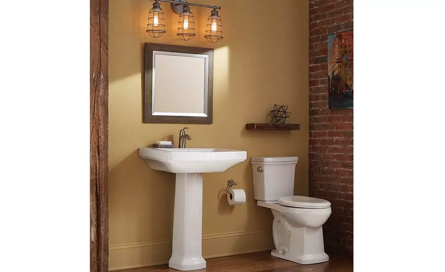 Gerber’s Hinsdale suite features a modern take on traditional styling. With its blend of contemporary design elements, the products bring a more updated and relevant look to today’s customers, who still prefer traditional aspects to their décor. The styling is available in a high-efficiency toilet operating at 1.28 gpf and two pedestal sinks. The WaterSense-certified toilet features the brand’s proprietary QuietClean flushing system. QuietClean combines tank components in the industry with dual-siphon jet technology for better clean and carry.