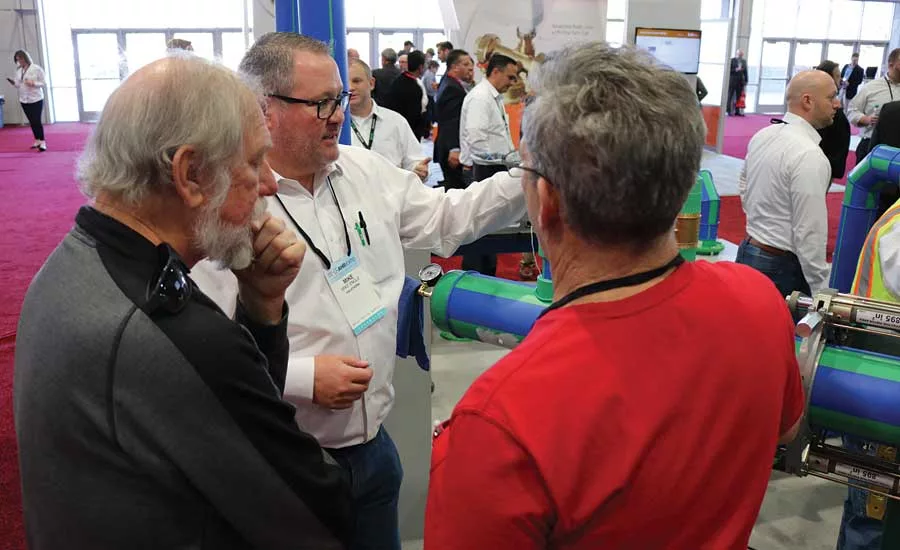 Aquatherm’s Mike Engle demonstrates the hot tap at the 2017 AHR Expo in Las Vegas. Photo credit: Plumbing & Mechanical