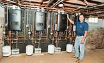 Victor Waskiewicz, president of JV Mechanical Contractors, stands near four installed Noritz CB Combi units at a multifamily application in Massachusetts. Photo credit: Frank Monkiewicz