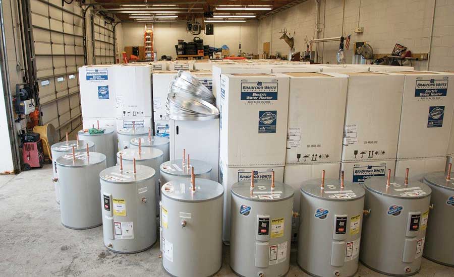 For the first shipment, Hough arrived with two team members to help unload the truck, one box at a time. For the next delivery, the warehousemen arrived again, ready to add to the growing mountain of water heaters there.