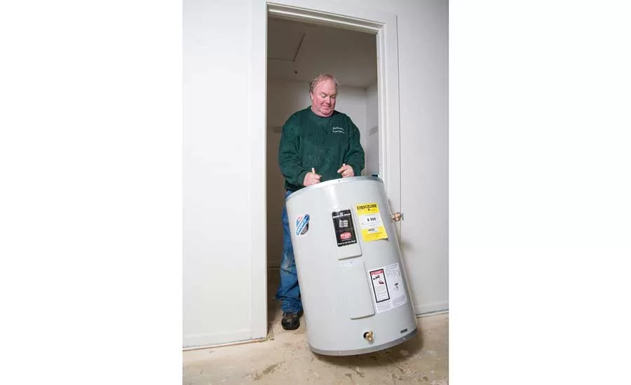 Sheridan rolls a new water heater into position for another install at “the Village.” Photo credit: Bradford White