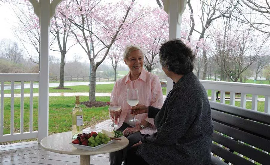 Residents relax at one of many green spaces at White Horse Village. Photo credit: Bradford White