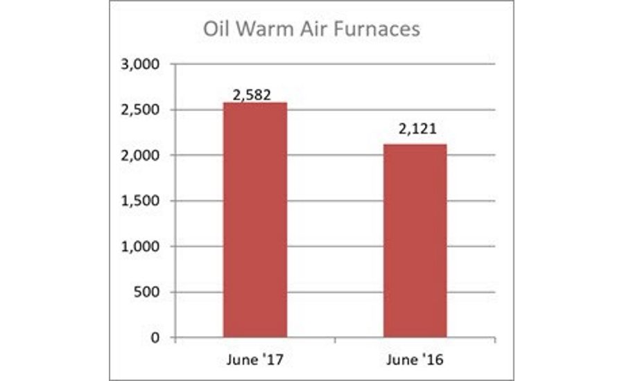U.S. shipments of gas warm air furnaces for June 2017 increased 9.8 percent to 301,945 units, up from 274,953 units shipped in June 2016. Oil warm air furnace shipments increased 21.7 percent to 2,582 units in June 2017, up from 2,121 units shipped in June 2016.