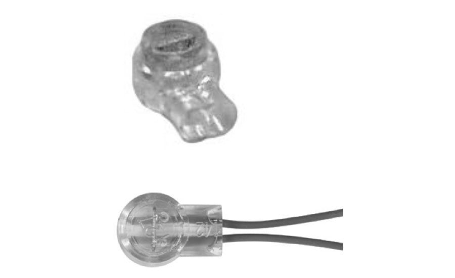 If you need to join the leads from exterior located thermistor sensors to a cable, make every effort to locate the joint inside and where it’s accessible. If the joint has to be outside, make it with the gel-fired compression connectors used for exterior telephone wiring connections. An example of such a connector is shown in Figure 3. The gel inside these connectors provides a waterproof seal of the electrical bond.