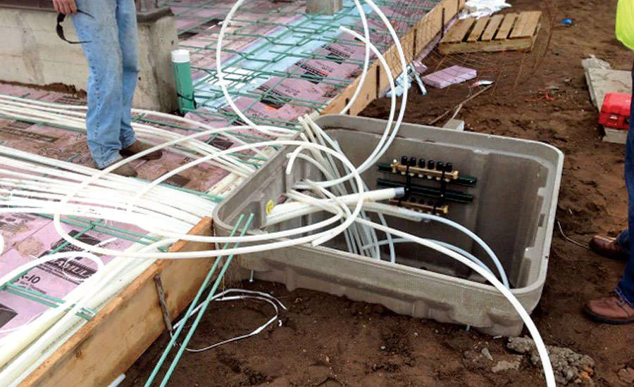 “We laid down a total of 48,000 feet of ¾-inch Wirsbo hePEX tubing placed 6 inches on center,” says Greg Koba of Klamm Mechanical in Burnsville, Minn. “We then placed six manifold boxes every 85 feet, housing a total of 20 TruFLOW Jr. manifolds.”