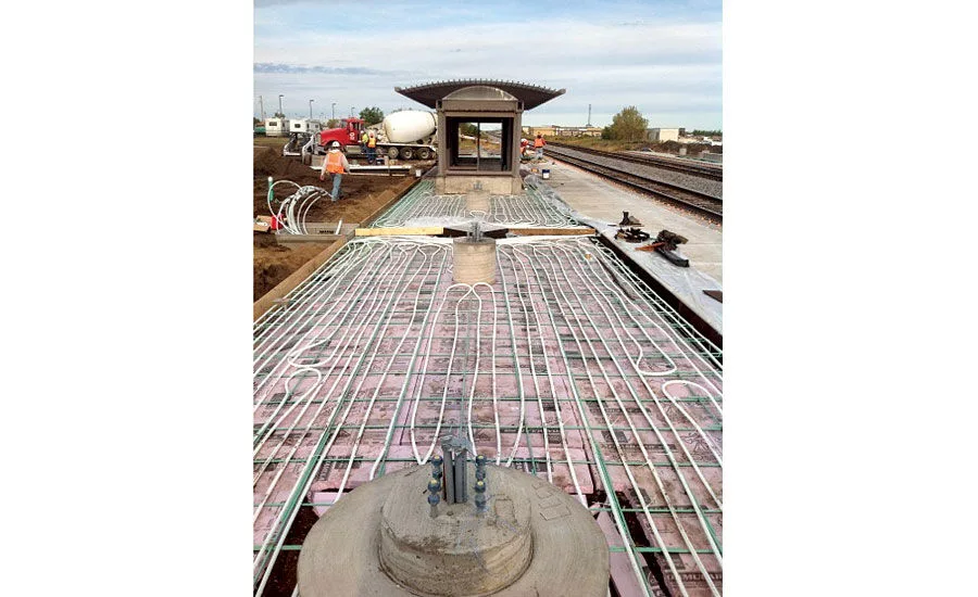 The Ramsey, Minn., light rail project uses 48,000 feet of ¾-inch Wirsbo hePEX tubing placed 6 inches on center for the snow- and ice-melt system. Photo courtesy of: Uponor
