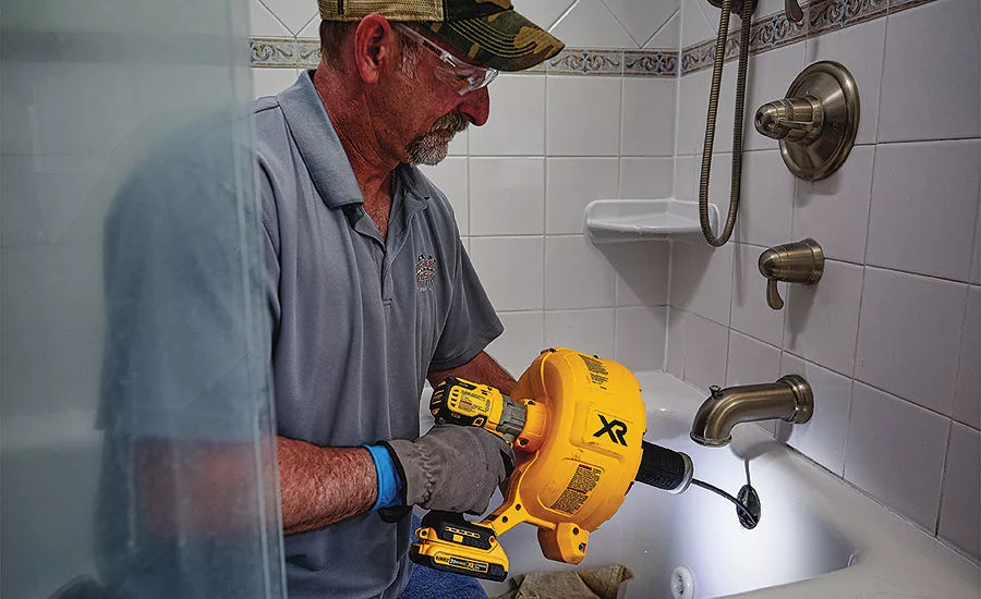 DeWalt's 20V MAX XR Brushless Drain Snake features a built-in LED light as well as a variable-speed trigger with drill-style in-line forward/reverse modes for ease of use. Photo credit: DeWalt