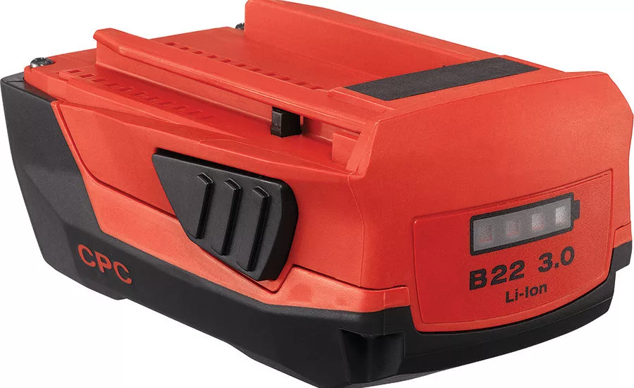 Hilti’s B22 lightweight, fast-charging batteries are designed to fit cordless tools and are designed for demanding applications. Photo credit: Hilti