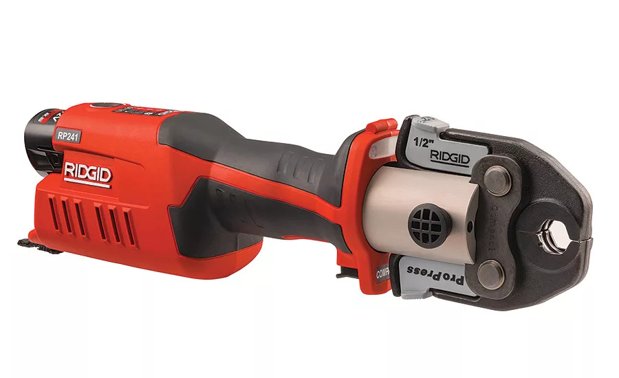 Ridgid’s RP 241 Pressing Tool is 25% smaller and 10% lighter than its predecessor. It is ergonomically designed to help the user easily work overhead and in tight spaces.