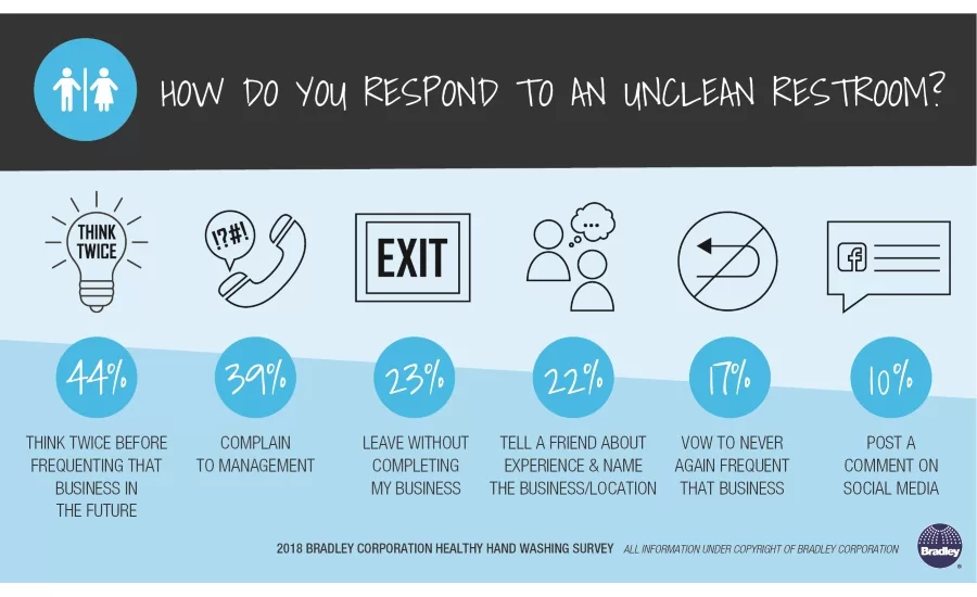 “More than half of Americans say they are unlikely to return to a business after experiencing a poorly maintained restroom,” Dommisse said. “Others will complain to management, tell a friend or leave right away without completing their business.”