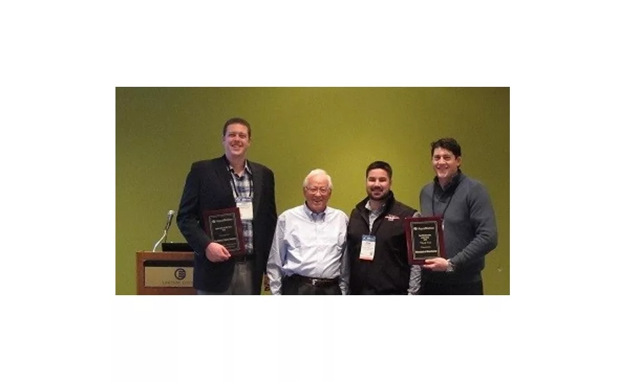 Hans Kuster, president of Aquamotion, presented a plaque and recognition to Greg McCarthy, Sean Herrick, and Patrick McCarthy at the AHR Expo in Chicago for their outstanding efforts and sales of AquaMotion pumps in 2017.