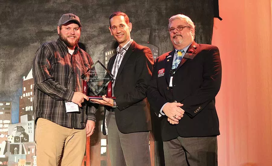 The 2017 Plumbing Apprentice of the Year Matt Johnson (far left), of Midwestern Mechanical in Sioux Falls, South Dakota, accepts his prize during CONNECT 2017. Photos by Jen Anesi-Brombach