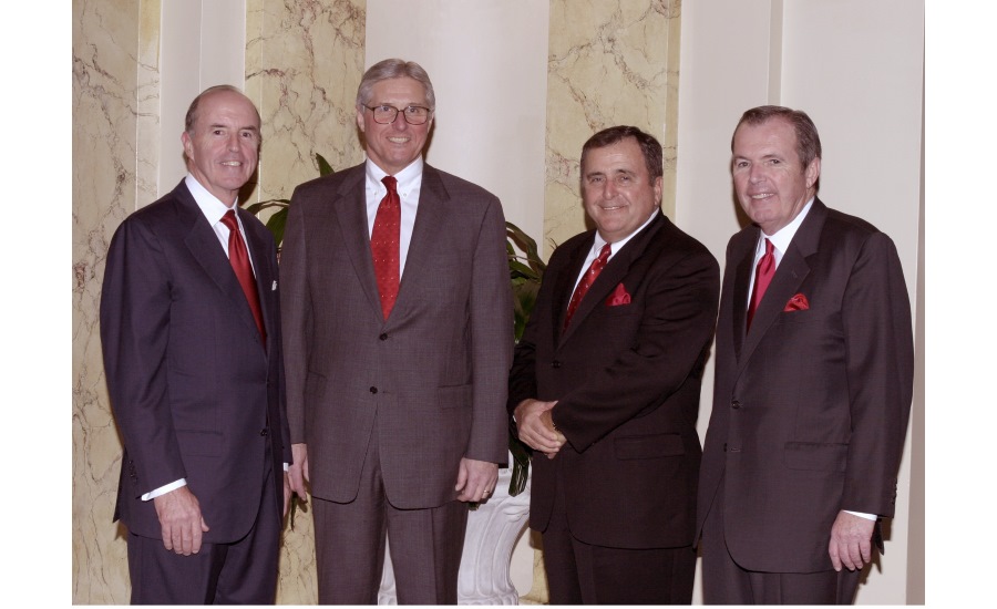 Emerson Swan execs, circa 2005, from left to right: Joseph E. Swan, CEO/COO Emerson Swan; Parker Wheat, President of Emerson Swan; George Simas Jr., President of Flexcon Industries; and Thomas J. Swan Jr., Chairman of The Swan Group. Photo credit: Emerson Swan/Parker Wheat