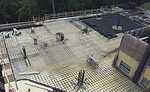 Aerial shot of the installation crews setting the Wirsbo hePEX from Uponor on one of the six slabs in the thermally activated system.
