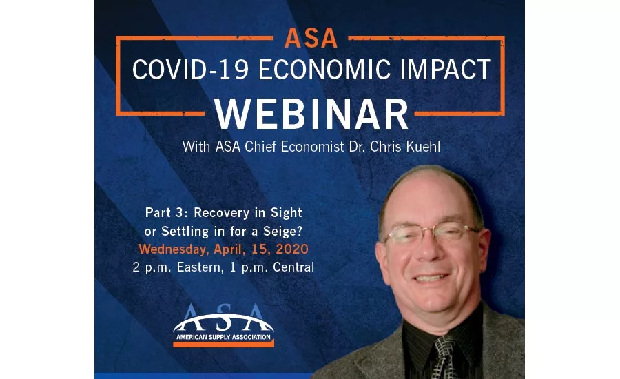 American Supply Association Chief Economist Dr. Christopher Kuehl is conducting a series of three webinars related to the COVID-19 pandemic and its effect on our industry and the economy in general.