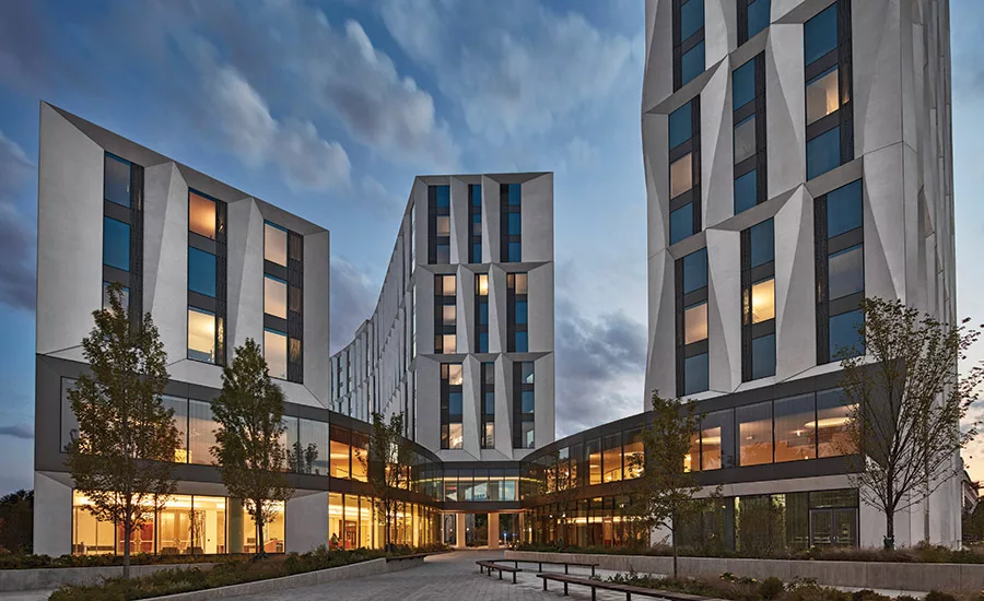 University of Chicago Campus North Residential Commons where student living quarters use REHAU in-slab hydronic radiant heating and cooling to improve energy efficiency and enhance comfort for the students.