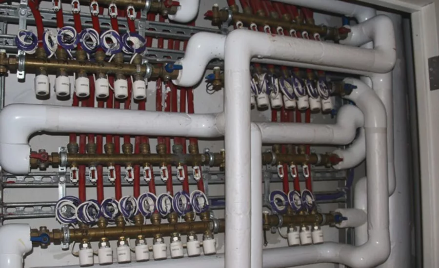 As a resident of a college campus with a district energy system, here is what you would or wouldn’t notice while studying. You would not see a row of air conditioners outside windows, like a row of parked cars. You would not hear fan noise of a blower cycling on and off, right behind your wall. As an example, for a total of a 10 million Btu load, instead of seeing 10 different 6-inch boiler vents sticking out of 10 different buildings, you might see two 14-inch vents coming out of the energy plant. Additionally, the maintenance crew might not need to get into your actual unit or space to service equipment. In a radiant district energy system, the only moving mechanical parts in a building may be a thermal actuator in a manifold cabinet, hidden out of site.