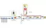 Both heat sources can operate individually or in parallel supplying heat to a buffer tank. The mass of the buffer tank stabilized the system against short cycling.