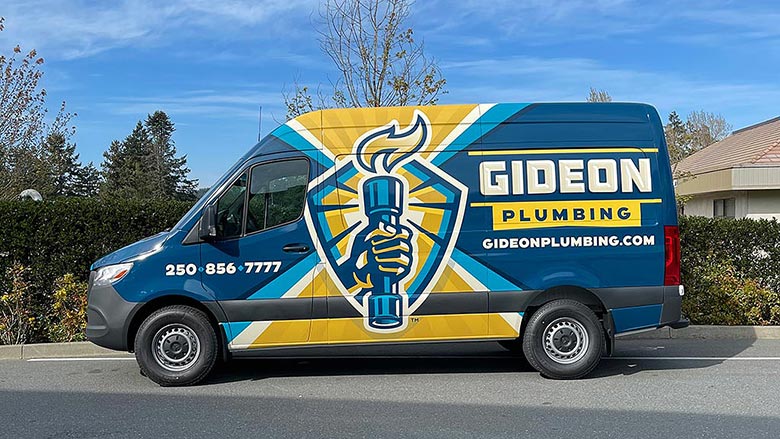 The professional-looking vans help Gideon Plumbing stand out in a very competitive market.