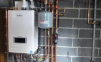 RCB SERIES Commercial Wall-Hung Boiler is a compact building heat source that delivers reliable, energy-saving performance with ground-breaking features that outperform other boilers. Available in 301,000 Btu/h and 399,000 Btu/h models, the wall-hung boiler can provide heating to the building as well as connect to an indirect tank for domestic hot water production. The boiler features a stainless steel water tube heat exchanger with 97% thermal efficiency and 10:1 turndown ratio offers precise load tracking and energy savings. Combine up to 8 boilers on one system with integrated cascade logic that distributes runtimes equally for optimal application diversity.