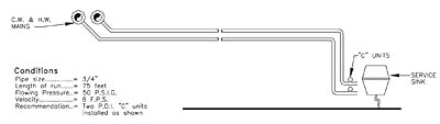 It is suggested that the engineers identify the water hammer arresters by the PDI symbols on the riser diagrams, as shown in the illustration. This will assure that the contractor will provide the correct size when installing the water distribution system.