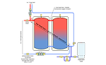 The heat stored in the tank also can be used for domestic water heating or preheating. This can be done using an internal coil heat exchanger or with the “on-demand” assembly shown in Figure 3.