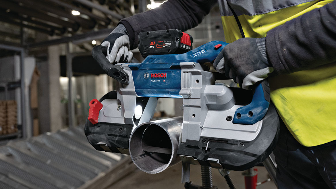 Bandsaws are essential for cutting pipes and hangers on jobsites. Photo courtesy of Bosch