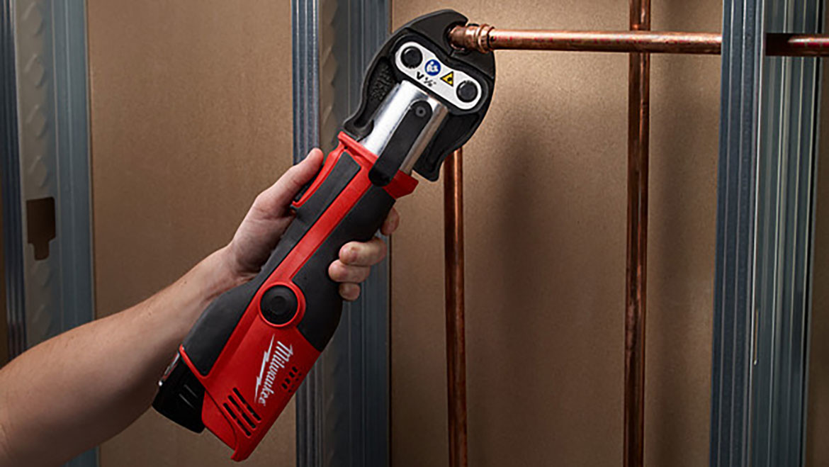 Press tools, specifically those for pressing copper and PEX, are top needs for plumbing contractors in 2025. Photo courtesy of Milwaukee Tool