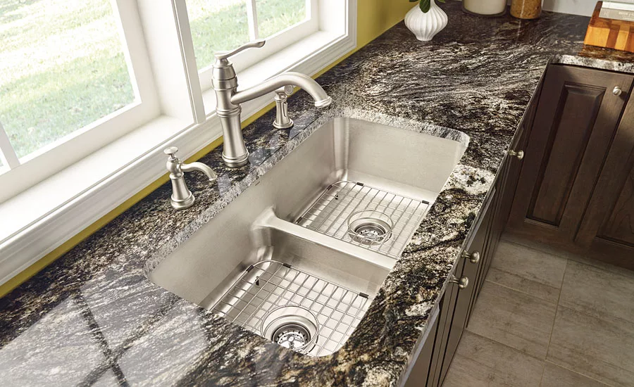 Moen’s Low Profile Divide stainless-steel sinks feature a lower center divide between the two sink bowls — making it easier to rinse large items, while providing the convenience and functionality of a double bowl. The sinks are made from high-quality, 18-gauge stainless steel. Available with either two equal-sized bowls or with two offset bowls (one large/one small bowl), the sinks feature a wear-resistant finish that offers durability and helps stand up to chipping, cracking, staining or peeling. Additionally, its SoundSHIELD undercoating provides exceptional noise reduction.