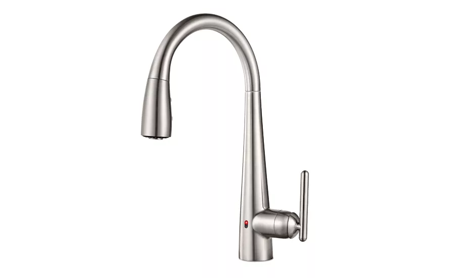 Pfister's Lita pulldown kitchen faucet features REACT touch-free technology. Additionally, SmartStop functionality automatically turns off the faucet after two minutes to save water and provide added convenience. Hibernate mode gives the user the option to disable the sensor during faucet cleaning. It features temperature adjusting, handle-forward design, 1.8 gpm at 60 psi, and installs with or without deckplate. It includes 36” integrated nylon supply lines with 3/8” female fittings. Plug-in for everyday convenience or use an optional battery pack.