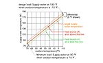 The design load condition shown in the upper right corner of Figure 1 indicates a target supply water temperature of 180° at a corresponding outdoor temperature of -10°; 180° is a typical supply water temperature for a fin-tube baseboard system under full design load conditions.