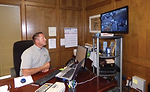 Glenn Fuller monitors the cameras from his desk, not only for security, but as a means to keep communication open. Photo Credit: Nadia Askar/Plumbing & Mechanical