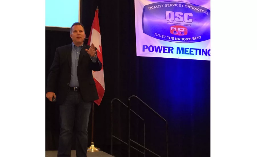 PM columnist Kenny Chapman speaks at the QSC Power Meeting March 19 in Daytona Beach, Fla. Photo by Bob Miodonski/Plumbing & Mechanical