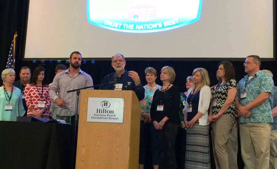 Members of Charlie Wallace's family join him on stage March 19 during the QSC Power Meeting in Daytona Beach, Fla. Photo by Bob Miodonski/Plumbing & Mechanical