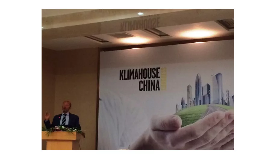 Italian architect Massimo Roj addresses the Klimahouse China Congress May 31 in Beijing. Photo by Bob Miodonski/Plumbing & Mechanical