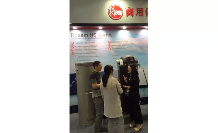 Rheem displays its water-heating products to visitors at ISH China/CIHE in Beijing. Photo by Bob Miodonski/Plumbing & Mechanical