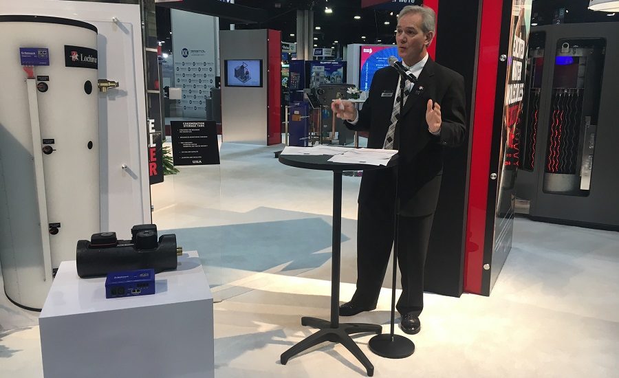 Lochinvar VP of Sales Mike Lahti unveils its new micro CHP cogeneration product, the XRGI25.
