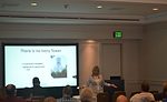 Melissa Wirkkala, marketing and events manager at The New Flat Rate, talks flat rate pricing with International Roundtable attendees during the vendor partner program.