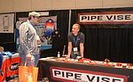 Brennan Perot, salesman at Pipe Vise, talks with an interested attendee at Service World Expo.
