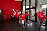 Hilti employees are ready to welcome their tour groups at the company’s headquarters in Lichtenstein.