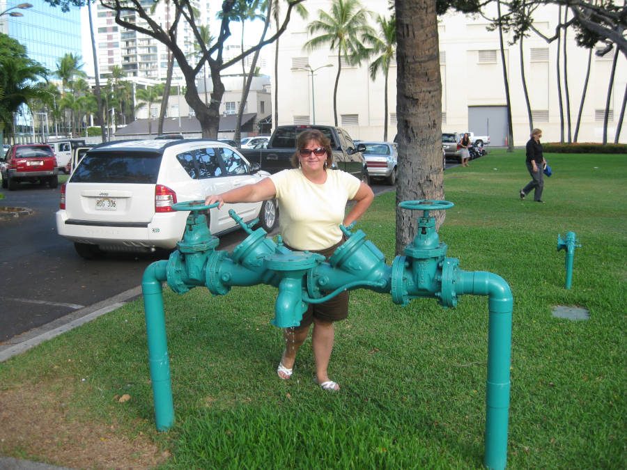 Sean Cleary, vice president of industry programs and BPI Operations for IAPMO, says his wife is a good sport about posing for pictures with backflow prevention assemblies during vacations. This one was taken in Oahu, Hawaii in 2018. Photo Courtesy of Sean Cleary.