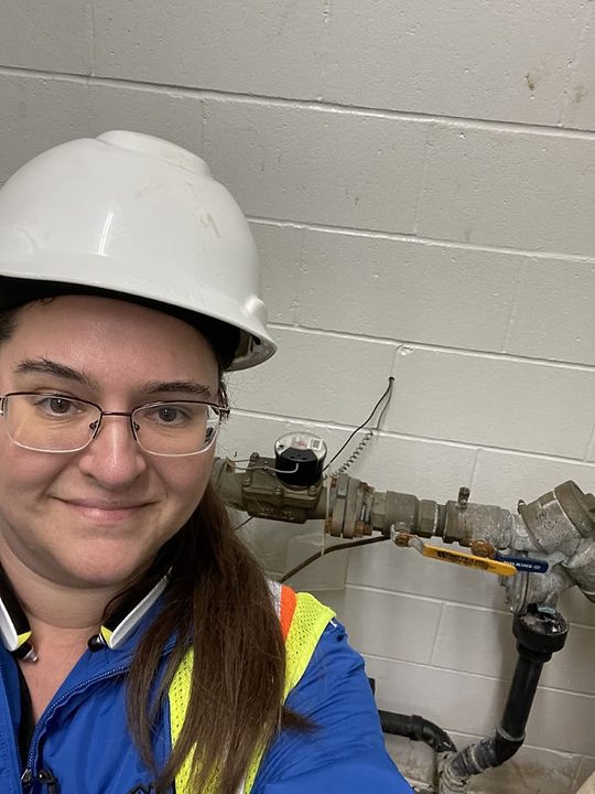 A Backflow Services employee poses with an assembly. Photo courtesy of Tom Allingham.