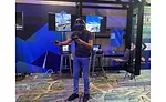 A ServiceTitan Pantheon attendee gives a virtual reality game a go in Partner & Product Village.